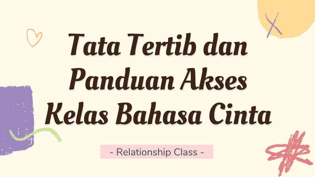 Selamat Datang di Kelas Bahasa Cinta dari Relationship Class. Di sini, Anda akan mendapatkan seluruh materi Kelas Bahasa Cinta.Untuk membaca panduan dari Kelas Bahasa Cinta ini, Anda bisa menekan tombol "Panduan Kelas."Jika ingin mengakses materi langsung, silakan tekan tombol, "Materi Kelas."